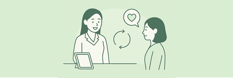 この一言で、患者様は「覚えていてくれたんだ!」と感動し、クリニックに対して強い親近感と信頼感を抱きます。これはマニュアル通りの綺麗な言葉を並べるよりも、はるかに患者様の心を掴むテクニックです。顧客志向というマインドセットはもちろん重要ですが、こうした再現性のあるテクニックを院内で共有・実践することが、クリニック全体の接遇レベルを底上げします。