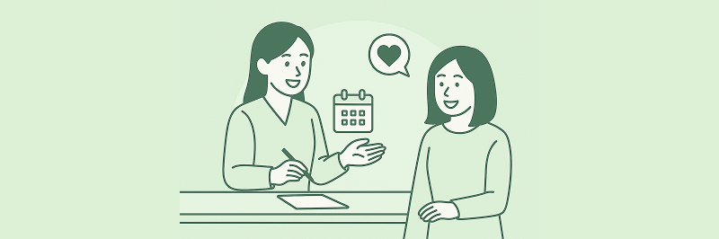 単発の施術であっても、患者様の美を継続的にサポートするのがプロの役目です。「もし今回のご予算が厳しいようでしたら、2ヶ月後にまたこの施術を受けに来てください」「次はピーリングを組み合わせると、さらに効果が高まりますよ」といった**「未来の話」**を積極的に行い、その場で予約を提案する文化を育てることが重要です。